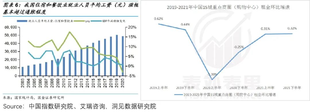 如下图,人工成本增长维持了多年以来的增长趋势;而租金成本从2020下半年开始,也呈现V型反弹,增速逼近疫情前水平。