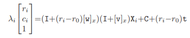 2. 以 R6P (Cenek ALbl, CVPR’15) 为代表的 minimal solution 方法。这个是当年的 CVPR oral,作者首先对上面的匀速模型做了进一步简化。在角速度上,假设了一张相片的 ego-motion 不超过 30 度,因此上文的罗德里德公式只取一级泰勒展开。这个近似让整个 ego-motion 模型的先行性大大提高,他们又进一步对旋转公式进行了线性化,这个 double-linearized model 是这样的:
