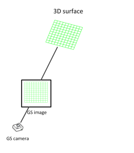 这个时候,我们来做一个思想实验。能不能用一台 GS 相机拍出和 I2 相片一样的形变呢?答案是可以的,只要把那个 3D surface 掰扯变形,我们也可以用 GS 相机拍出一模一样的形变照片: