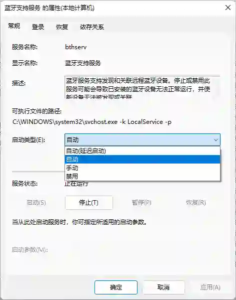在遇到目前的状况时,可以尝试在服务的属性内将相应的启动类型改为「自动」,保存后重新启动该服务并重启电脑。有一定几率蓝牙/无线网络功能会重新恢复。如果失败,这两项服务启动类型的改变也不会带来太大影响。