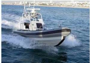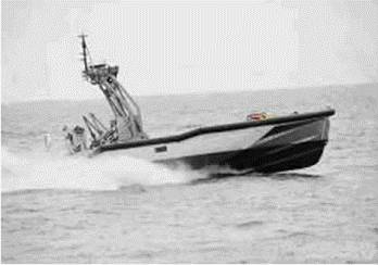 ⑴“Spartan”。该无人艇项目由美国主持,联合法国、新加坡共同研制。“Spartan”试验艇搭载于“葛底斯堡”号导弹巡洋舰,其参加了波斯湾作战行动后,美国海军部根据其试验结果开始大规模的研制工作,并将其列入濒海战斗舰(LCS)的全套武器装备清单中。“Spartan”无人艇有两种设计方案,均为硬壳充气型高速滑行艇(见图1),它既能自主航行也可遥控操纵,艇长11m,排水量2.3t,最高航速可达50kn,自持力可达12h,可搭载1350~2300kg的有效载荷。