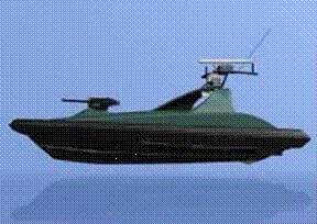 ⑵“Silver Marlin”。以色列埃尔比特系统公司研制的“Silver Marlin”号无人艇被称为第二代无人艇,于2007年初开始海试。该艇在Café赛艇35的基础上设计建造而成(见图6),艇长10.67m,满载排水量4t,最高航速不小于45kn,续航力500海里,续航时间24h。