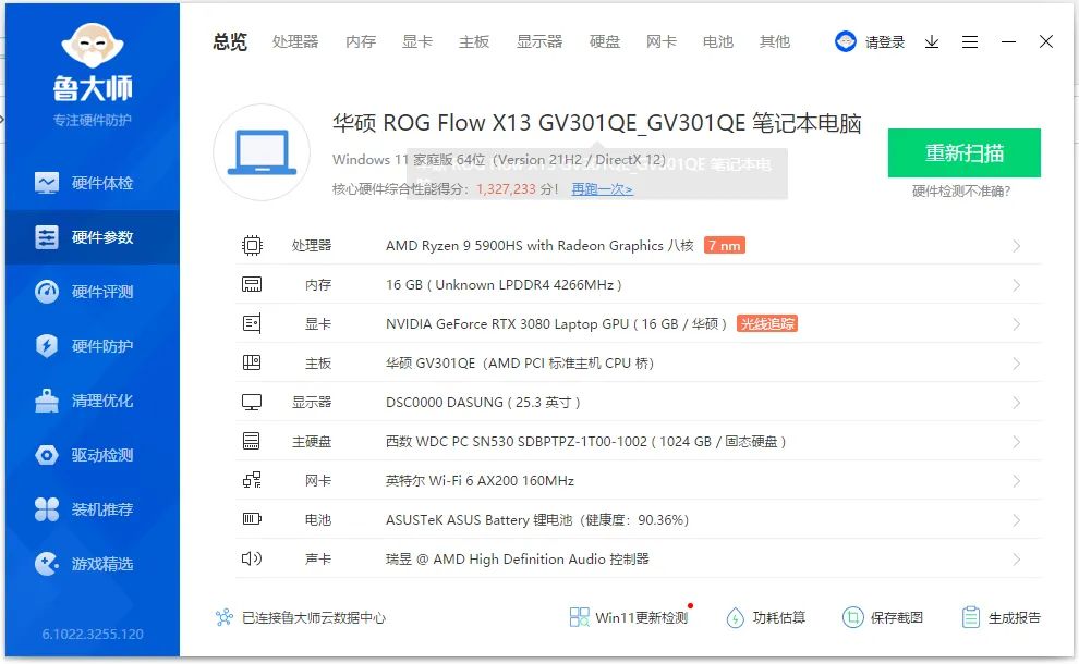 前一阵子买了个新的笔记本电脑,幻13-3050TI-1T版本,全能本,CPU是8核心16线程的标压版AMD锐龙9-5900HS,显卡是NVIDIA-3050TI,重量和macbook差不多,都是1.4kg,便携、可以改变形态。