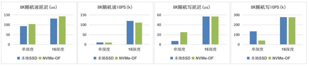 图4 NVMe-oF 与原始SSD的性能对比测试