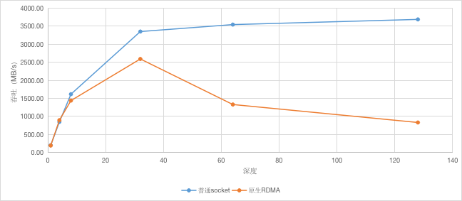 那么如果完成了RDMA对接,是否就能使我们的程序获得高性能呢?我们再看看在通信模块中对接完RDMA的对比性能测试。