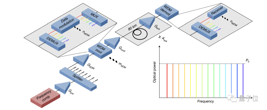 所以总而言之,用频率梳充当光源,不仅可以同时传送多组互相不干扰的数据,而且还能联合处理数字信号,最终大大加快了数据传输速率。