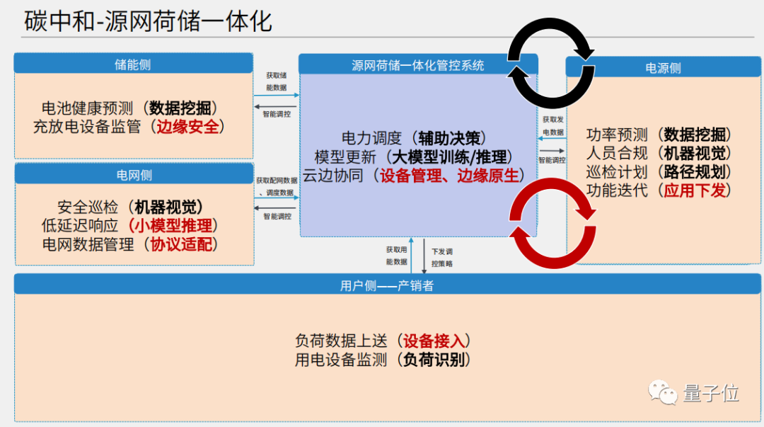 对于管控系统来说,更多的是体现在电力调度和辅助决策上。数据上传以后,要从数据回收、清洗、标注、训练,包括封装测试来实现一个新的闭环;再有云边协同方案,来形成第二个闭环。