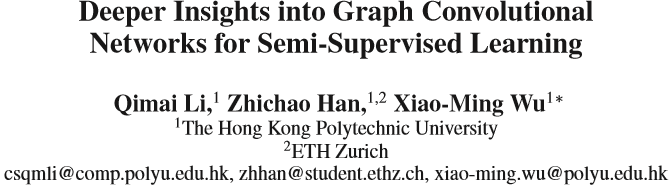 推荐理由:指出了GCN层数无法加深的原因,并提出了co-training和self-training的方法提高了GCN的能力。