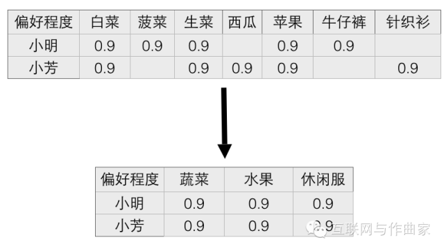 通过用户偏好矩阵,不断拟合计算,得到每个特征值的权重