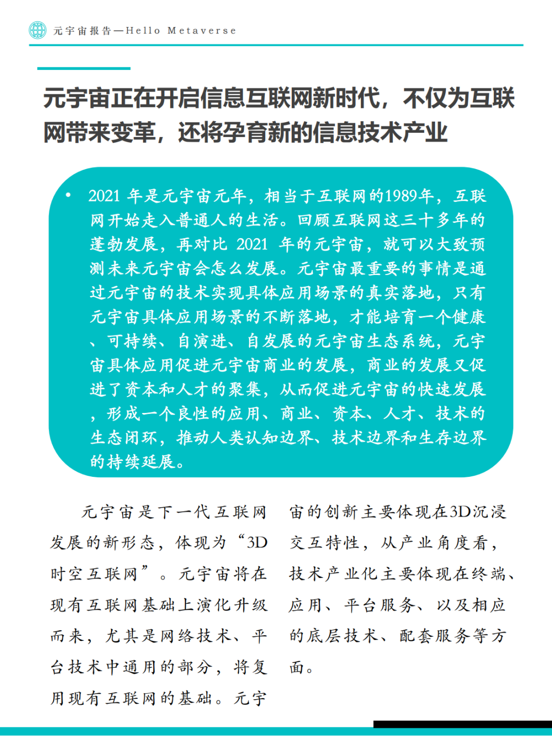 绍了元宇宙基本技术要素、商业应用及未来可能在虚拟世界中产生的重大影响。