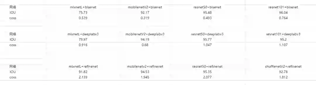 从基础网络上看,shufflenet 速度更快,resnet 效果更好。网络结构上从性能上分析 bisenet 性价比更好。我们在项目中使用的是 Bisenet 框架,在学习特征时并行两条支路,一条学习空间细节信息,一条支路学习高层语义信息,然后将学到的信息融合,能够更好学习到全局信息和局部信息特征信息。