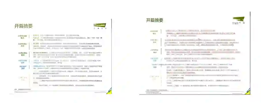 目前越来越多的资源信息是以图像形式存储,然而很多用户在获取图像后需要对图片进行编辑或者电子文档形式进行存储。最主流的做法是直接进行 OCR 提取,但这种方法无法满足用户对排版的需求。当前主流办公产品比如 office,wps,腾讯文档等会采用一些技术对图片进行排版恢复还原为 doc 形式的文档,通常针对以文字偏多,格式简单的图像效果比较好,但如果内容丰富,图片并茂的 ppt 内容图像在转为 doc 文档时由于图像比例,文档排版插入限制以及文档适应背景单一而丰富背景还原度差等问题会导致很多 ppt 形式的图片无法很好还原为电子文档。