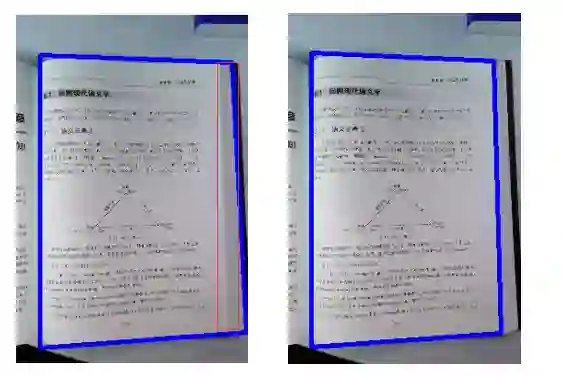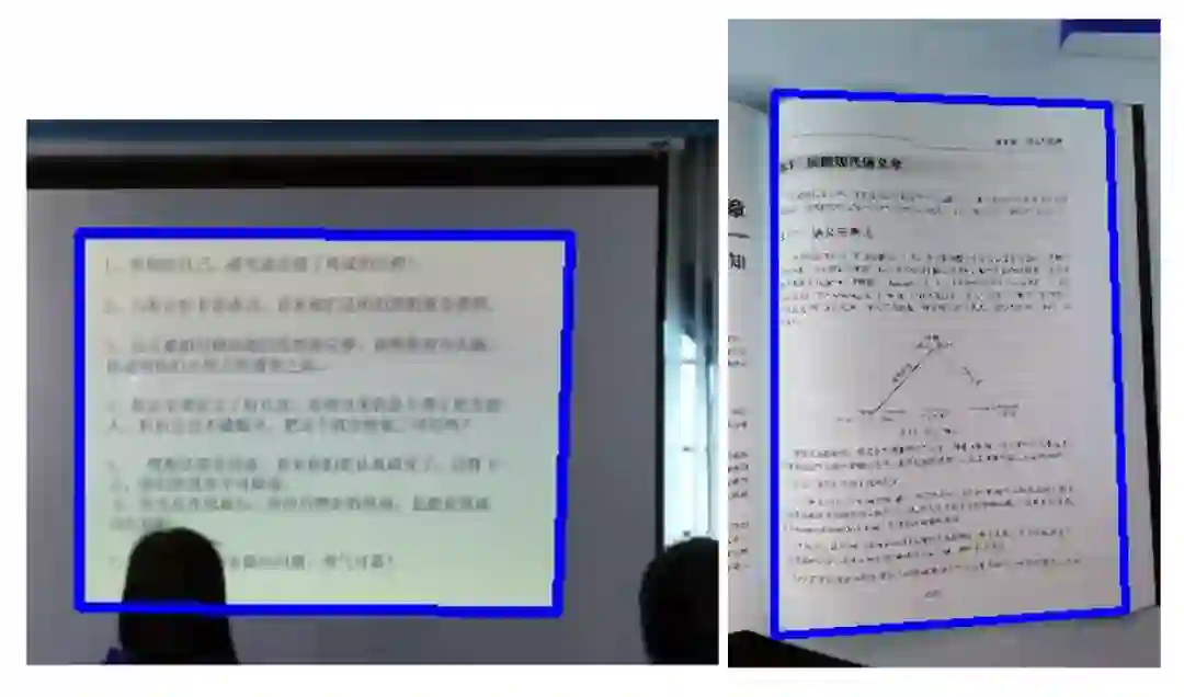 用户拍摄图片一般不会是工整图片,所以在进行提取前还需要做很多的预处理工作,其中最重要的一个模块就是先框选出真正我们需要转换的 PPT/文档内容。