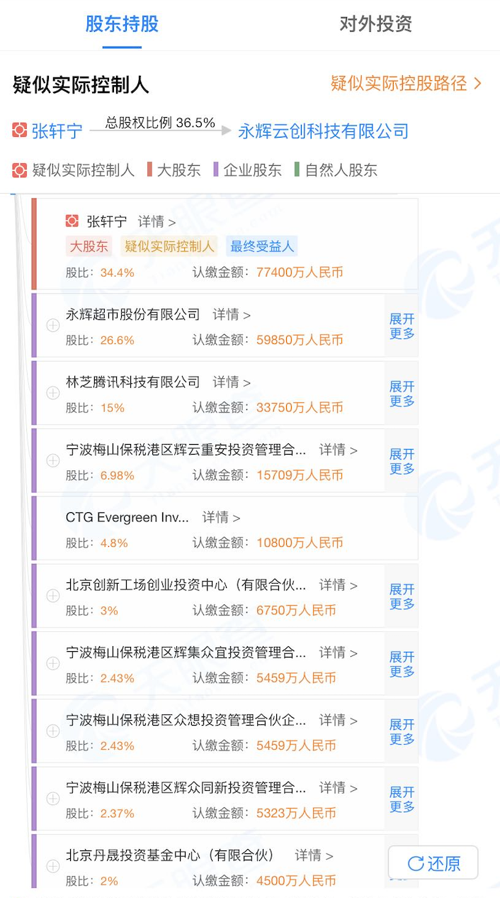 此次回购前永辉云创的股权结构 数据来源:天眼查