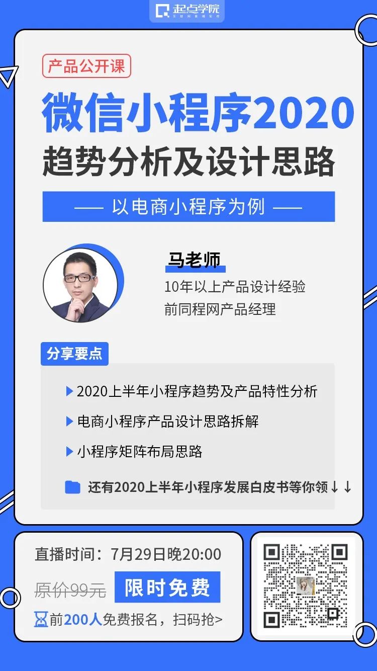 为了帮助意向进入小程序领域的产品同学,更快上手小程序产品设计,起点学院特邀业内资深产品老司机@马老师,以电商小程序为例,带你拆解——