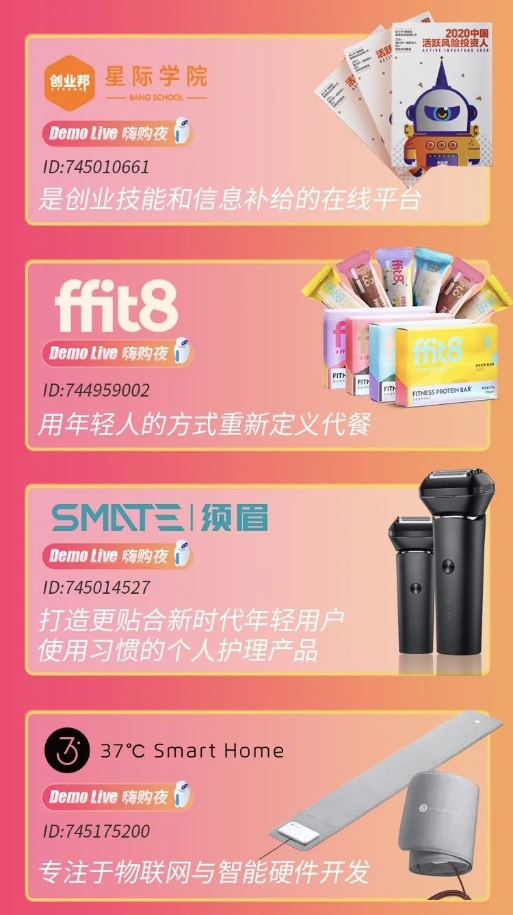 点击文末DEMO CHINA峰会页面链接里的“LIVE嗨购夜”以及创业邦官网相关专题页面均可直达观看