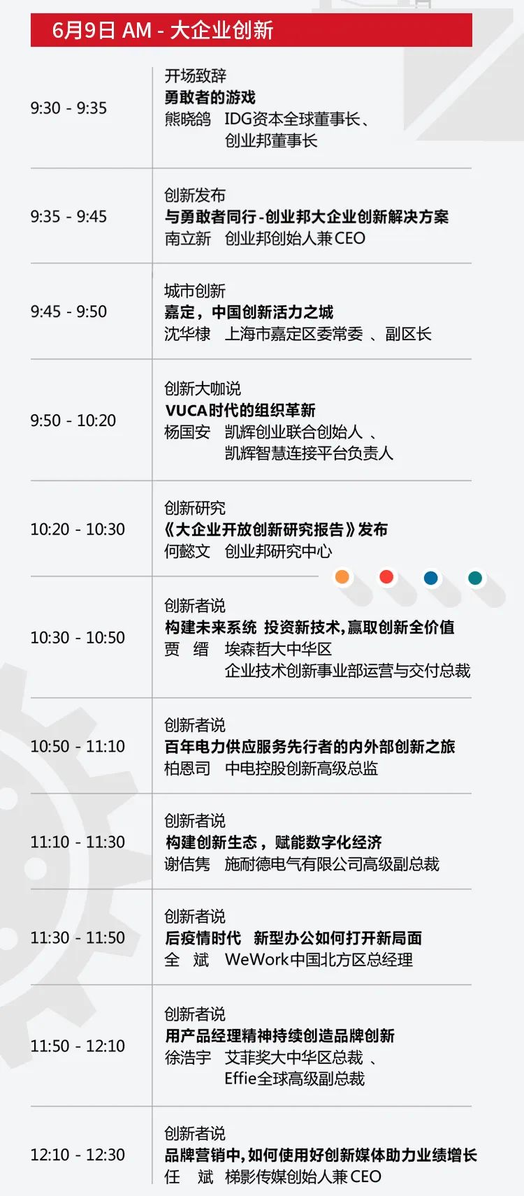 为了应对创新领域前所未有的挑战,有先见之明的大企业已经在尝试与外部优秀资源合作,进行开放式创新,面对疫情带来的社会经济和市场巨变,如何激发大企业创新动力?如何通过创新推动产业互联网生态的发展?作为初创成长型企业如何能够进入大企业创新生态体系中?……一切疑问将能在此次峰会上得到全新阐述和解读,让你醍醐灌顶。