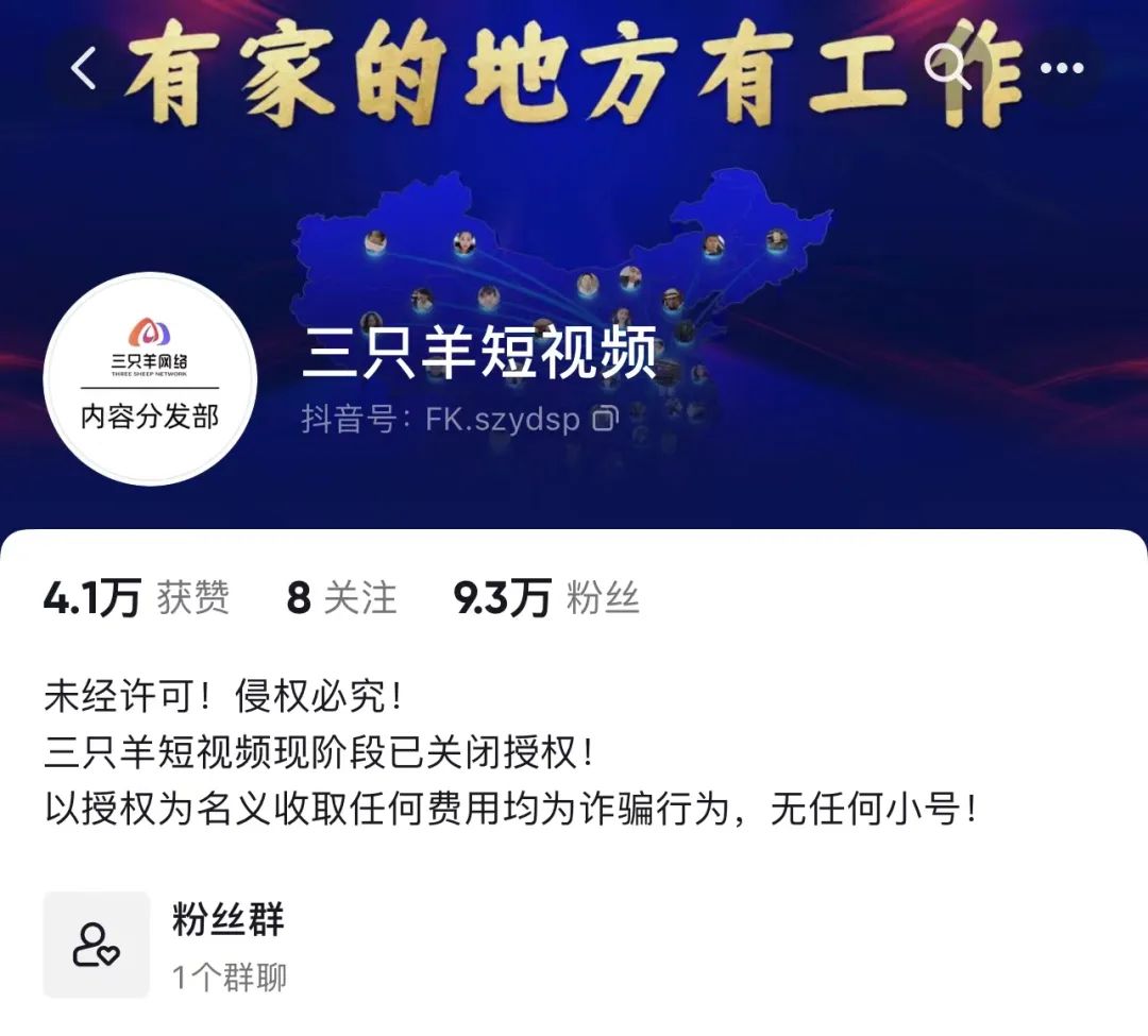 小杨哥已在近期暂停切片授权。据疯狂小杨哥旗下mcn机构合肥三只羊网络科技有限公司(下称“三只羊”)短视频抖音号介绍,三只羊短视频现阶段已关闭授权。