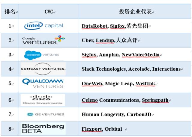 2016年最活跃的CVC当属英特尔和谷歌的风险投资部。参与风险投资案例均超过50,排名其后的Salesforce和Comcast投资案例数也都超过了40。