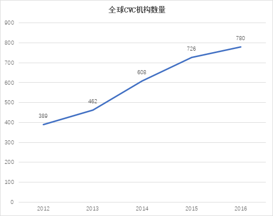 自2012年以来,CVC机构不断增加,在2013年-2015年期间增长明显,三年内增加57%,2016年度数量达到最高,共780家CVC处于活跃状态。结合CVC投资项目变化来看,CVC平均投资数量由3年前(2014年)的2.08下降到1.73。