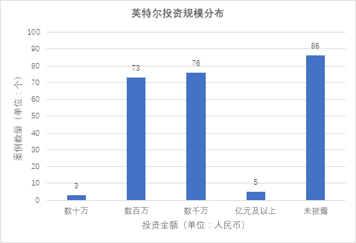 从投资规模来看,英特尔由于更多地投资于早期阶段的企业,相对而言每笔投资金额较小,多为数百万至数千万人民币。