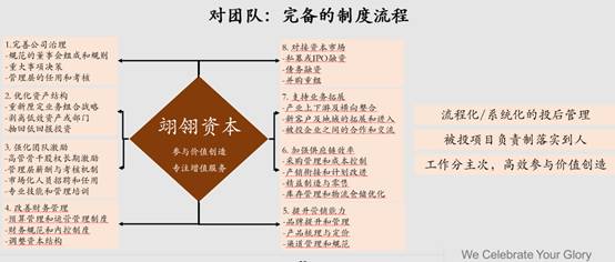 翊翎资本的投后工作模式十分成熟,依托自身经验,帮助被投资公司进行团队组建、模式梳理、经营培训并帮助融资。具体如下: