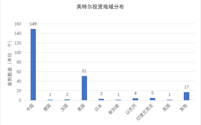 从投资案例的地域分布来看,英特尔主要投资于美国、中国、印度尼西亚日本等全世界范围内的企业。其中对中国的投资案例最多,其次是美国。