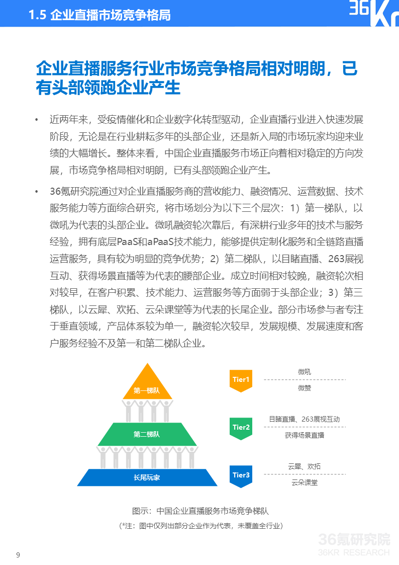 更多精彩内容,请关注“36氪研究”微信公众号。如想获取《2022年企业直播行业标准研究报告》,点击文章底部【阅读原文】,提取码:xrj8,或在36氪研究院微信公众号上回复“企业直播”获取下载链接。