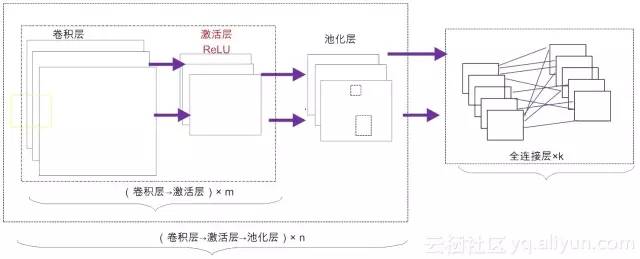 也就是说,可以先由m个卷积层和激活层叠加,然后(可选)进行一次池化操作,重复这个结构n次,最后叠加k个全连接层(m, n, k ≥ 1)。总体来讲,卷积神经网络通过多层处理,逐渐将初始的“低层”特征表示,转化为“高层”特征表示,之后再用“简单模型”即可完成复杂的分类等学习任务。因此在本质上,深度学习就是一个“特征学习(feature learning)”或“表示学习(representation learning)”。