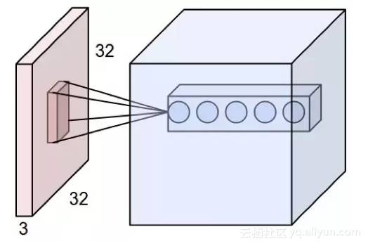 通过前面的介绍可知,每一幅CIFAR-10图像都是32×32×3的RGB图像。对于隐藏层的某个神经元,如果是全连接前馈网络中,它不得不和前一层的所有神经元(32×32)都保持连接。