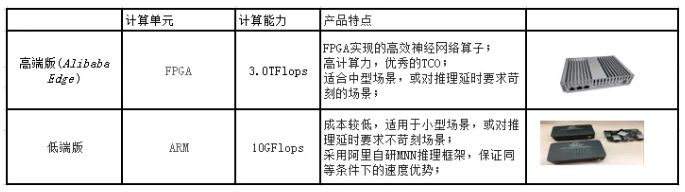 在这里我们着重介绍一下阿里巴巴自研的边缘计算产品 Alibaba Edge,该产品除了具有高达 3TGFlops 的 AI 计算能力外,相对边缘 GPU 方案有大幅的价格优势,同时具有云端一体化部署功能,产品平台化,可快速上线,支持大规模运维。