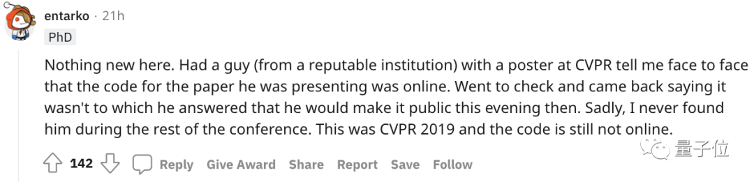 “CVPR 2019都还有篇论文的代码现在还没发布。原作者还亲口告诉我有代码且已上线呢……”