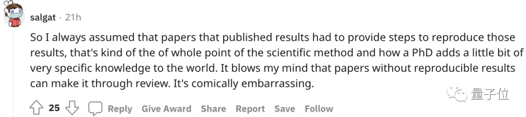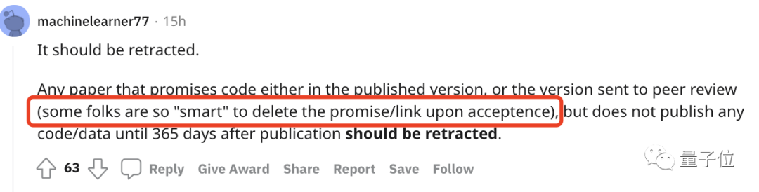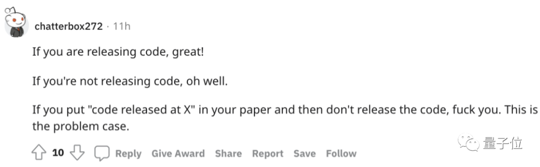 而关于不发布代码的原因,这里面还出现了“对于你来说开源代码可能就是30分钟的事儿,但有人真的很忙需要耗费数周才能完成,所以你不该责怪他们”的论调,但显然他没有抓住本次事件真正的问题所在: