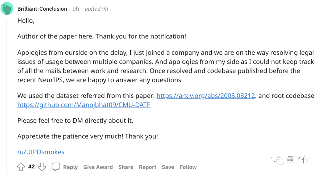 他首先道歉,表示自己刚刚进入一家公司工作很忙,没有及时跟踪到这篇论文的邮件。