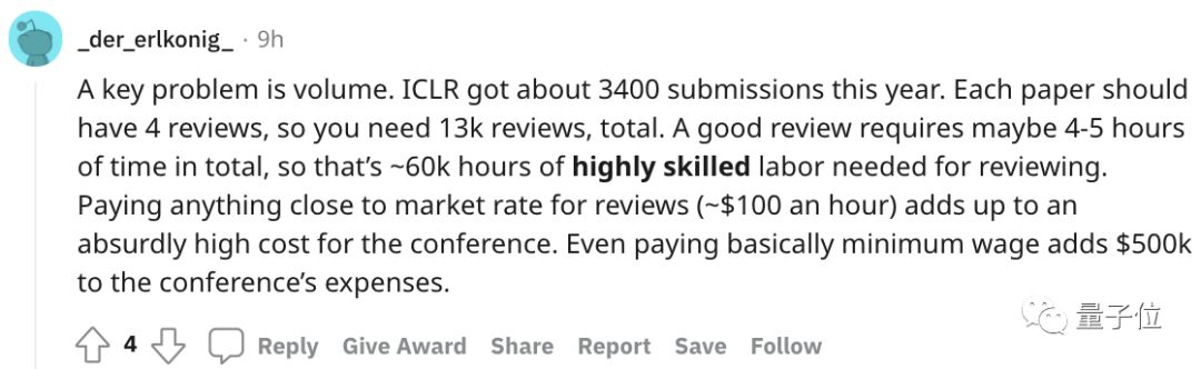 ICLR今年收到了大约3400篇提交,每篇论文应该有4条评论,所以总共需要13000+条评论。而一个好的评审总共需要4-5个小时在一篇论文上。