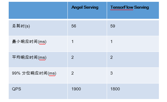 表 3 Angel Serving 和 Tensorflow Serving 性能对比