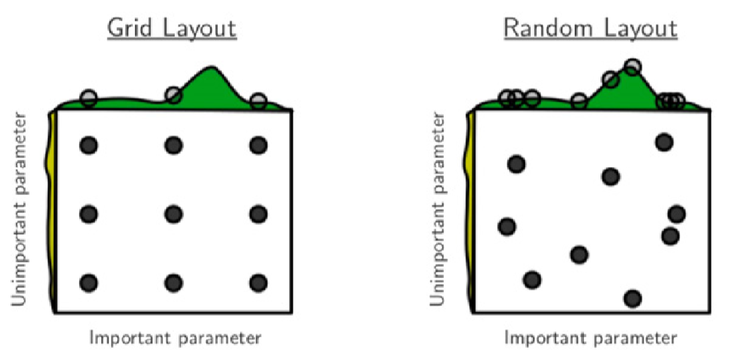 网格搜索:网格搜索将整个搜索空间切分为网格,假设超参数是同等重要的。这种方式虽然直观,但有两个明显的缺点。第一个是计算代价随参数数量的增长而呈指数增长,其次是超参数的重要程度常常不同,网格搜索可能会花费太多资源来优化不太重要的超参数;