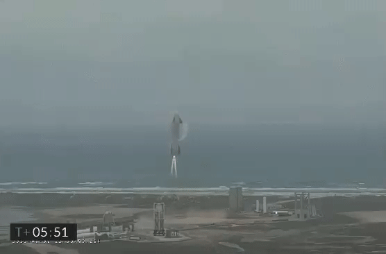 从 SpaceX 的直播视频中我们可以看到,飞船垂直飞到大约 10 公里(6.2 英里)的高度后关闭了全部三台猛禽(Raptor)发动机,开始了水平的下降,四个襟翼在计算机的控制下保持着飞船的姿态。在接近落地时,SN15 的两台发动机重新点火并执行复杂的「着陆翻转机动」。最后,星舰原形展开了「起落架」,降落在离发射台不远的混凝土地面上。
