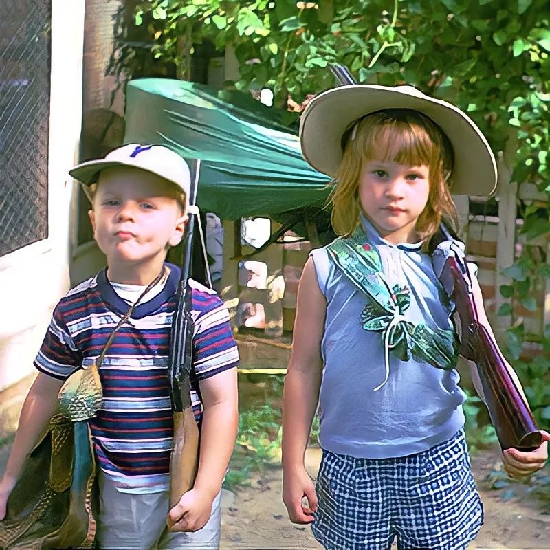1961年:五岁的弗朗西斯·阿诺德和她的四个兄弟之一的爱德华在宾夕法尼亚州的埃奇伍德家中。