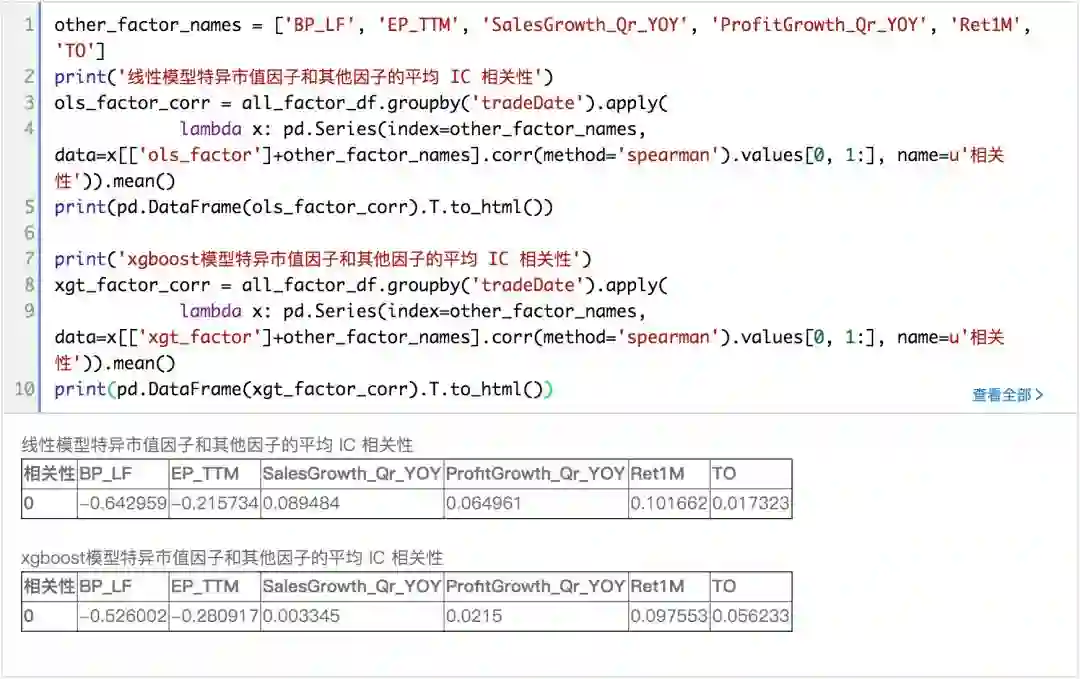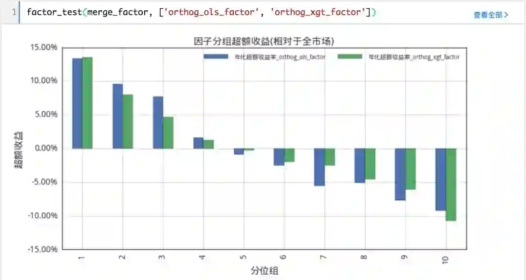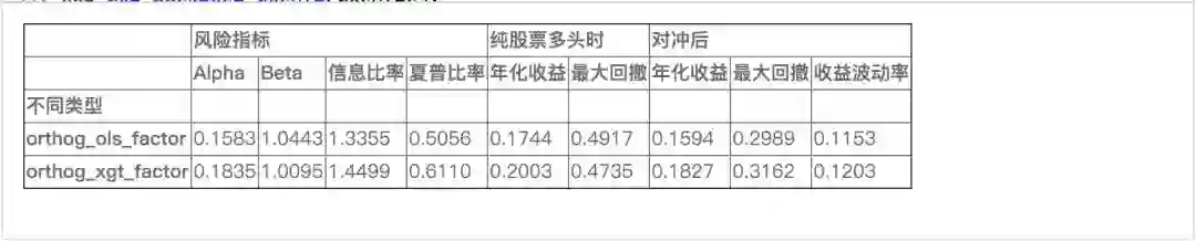 可以看出,正交化后特异市值因子的效果有些减弱,但xgboost模型提取的因子效果依然强于线性模型。