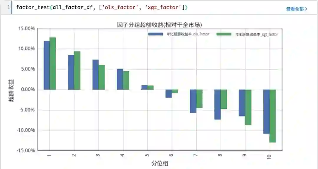 因子测试,主要是测试线性模型与xgboost模型的特异市值因子表现情况,主要查看分组超额收益与IC。注意:此处回测采取了简易回测,节省时间,没考虑交易费用,涨跌停等;