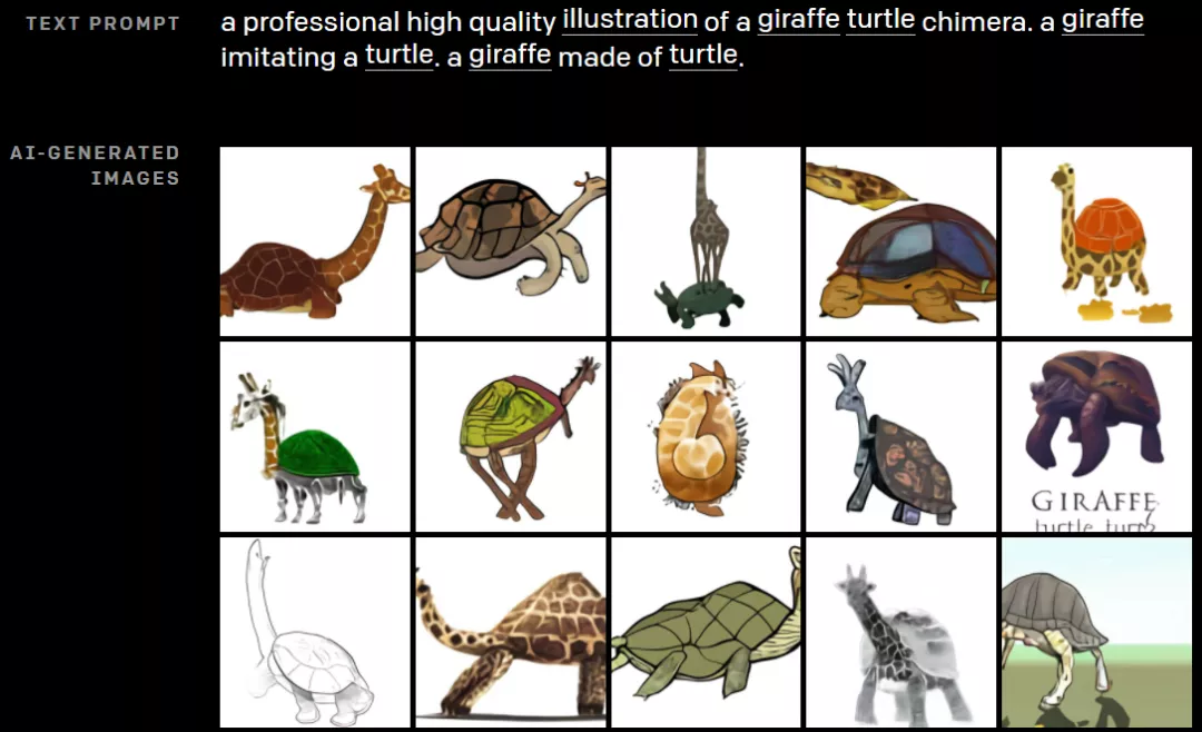 同时,DALL-E也有能力对生成的图像中的物体进行操作和重新排列,从而创造出一些根本不存在的东西,比如一个「一个长颈鹿乌龟」: