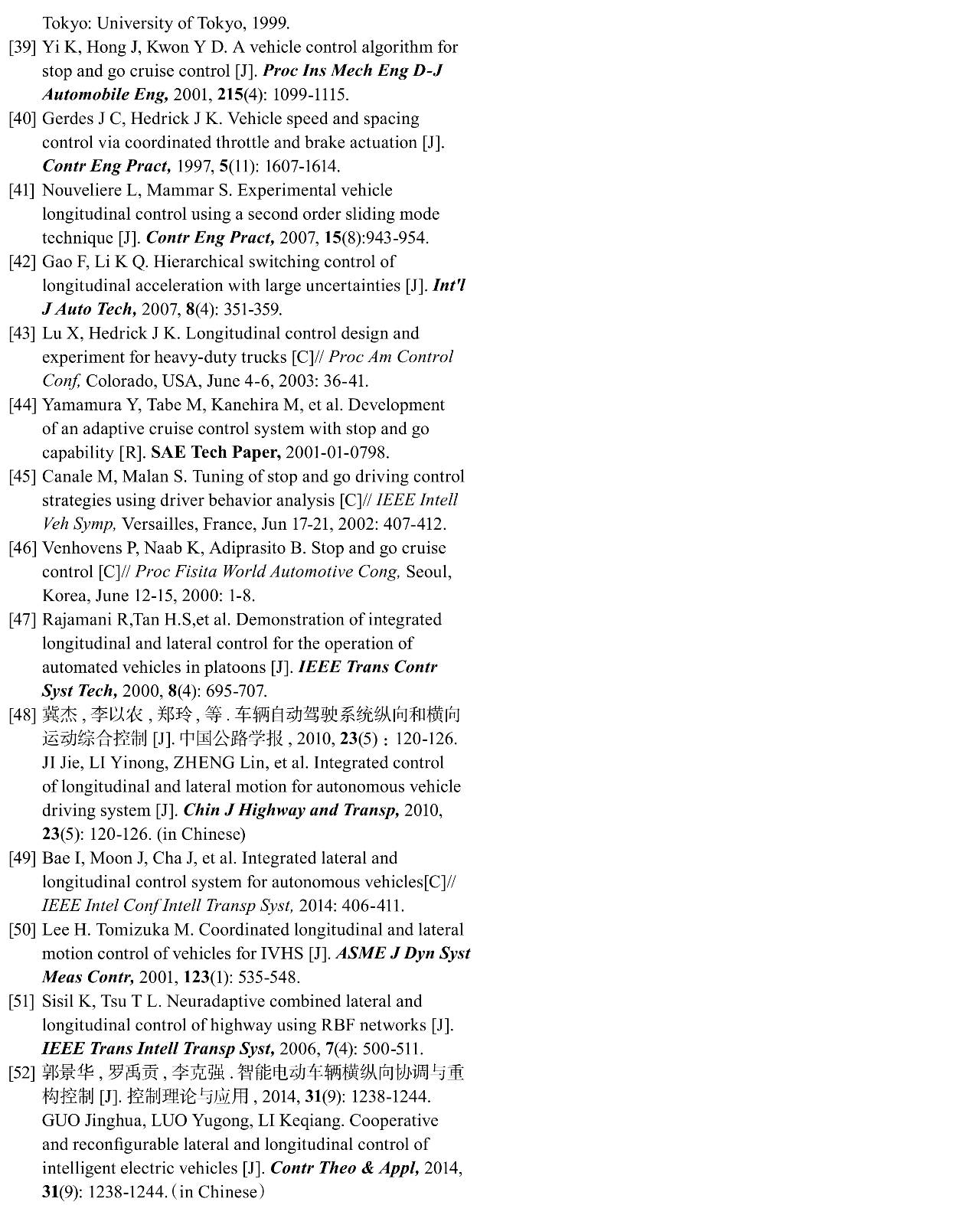 针对智能车辆横纵向动力学间的耦合、关联特性,部分学者尝试采用横纵向运动综合控制。对于智能车辆纵横向综合控制的研究工作,目前大多局限于理论分析。