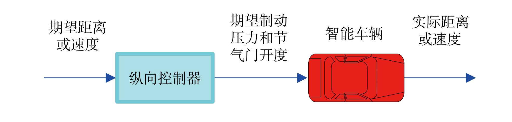 纵向控制主要研究智能车辆的速度跟踪能力,控制车辆按照预定的速度巡航或与前方动态目标保持一定的距离。