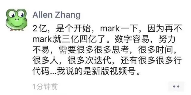 6月22日,张小龙高调地发了一条朋友圈,宣布微信视频号日活用户已经2亿,“mark一下”,对微信视频号接下来的发展充满信心。