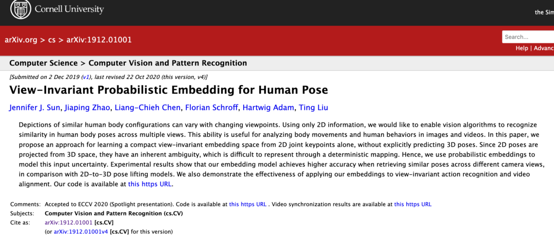 针对此问题,近日,Google更新了一项研究“人体姿态的视图不变概率嵌入”(View-Invariant Probabilistic Embedding for Human Pose)(Pr-VIPE)。