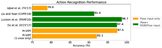 研究人员使用Penn动作数据集评估了Pr-VIPE嵌入,并证明了使用Pr-VIPE嵌入,可以在没有对目标数据集进行微调的情况下,获得非常有竞争力的识别精度。