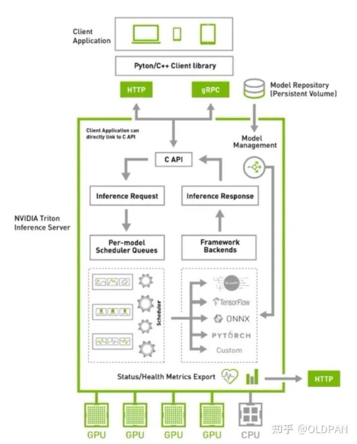 triton inference server,很好用的服务框架,开源免费,经过了各大厂的验证,用于生产环境是没有任何问题。各位发愁flask性能不够好的,或者自建服务框架功能不够全的,可以试试triton,老潘很推荐的哦。