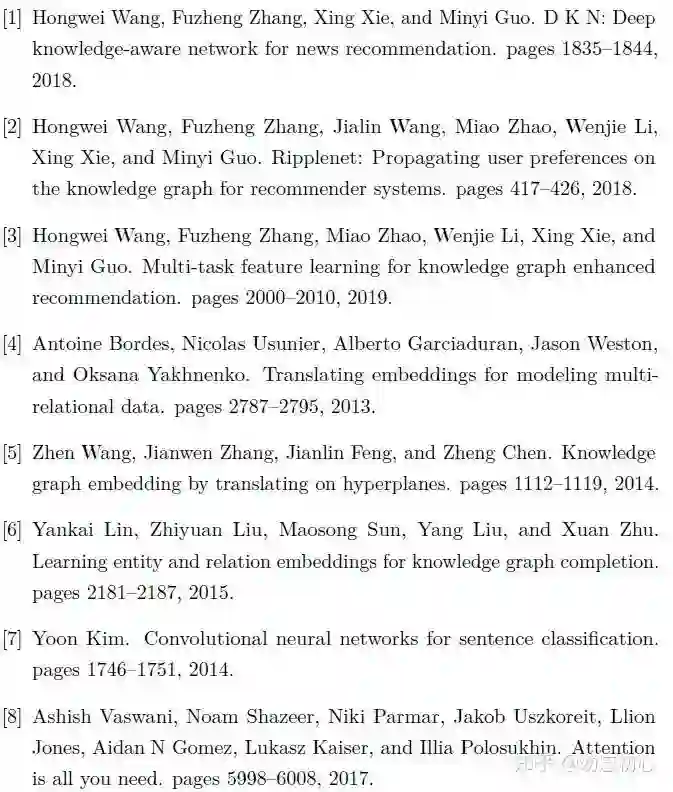 Hongwei et al. Ripplenet-Propagating user preferences on the knowledge graph for recommender systems. CIKM, 2018.