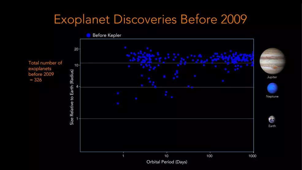 图丨当开普勒太空望远镜于 2009 年被发射升空时,我们仅仅发现了太阳系以外的 326 颗行星,其中大部分与木星大小相近,都比地球要大得多。